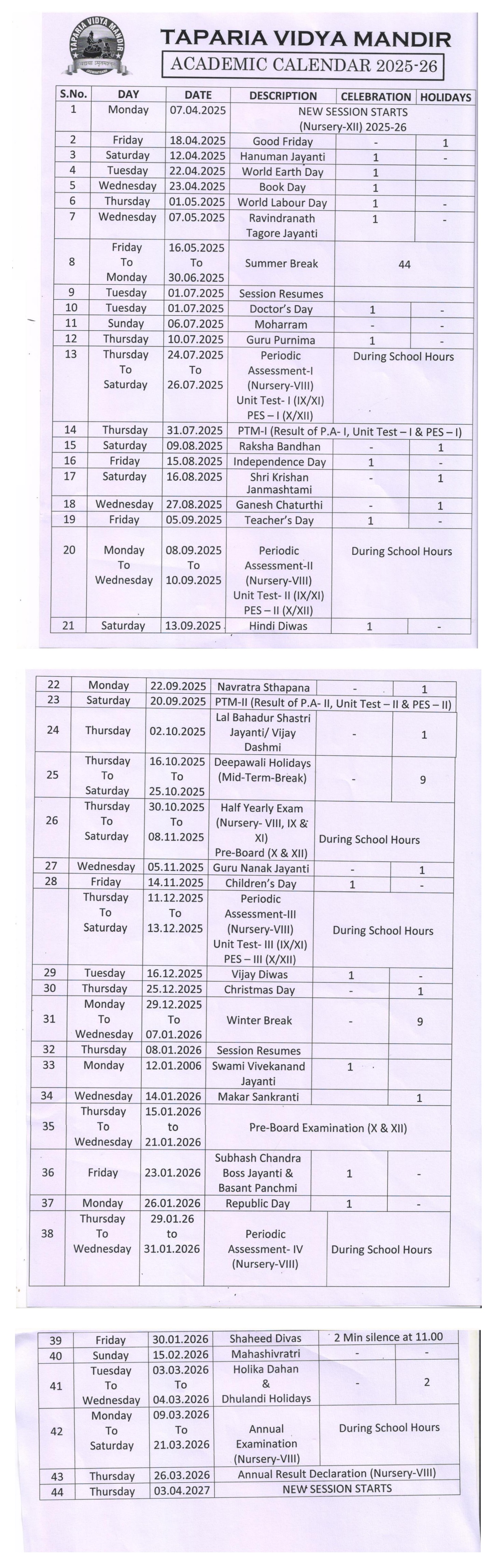 | 6. SCHOOL EMAIL ID | TAPARIAVIDYAMANDIR@GMAIL.COM |